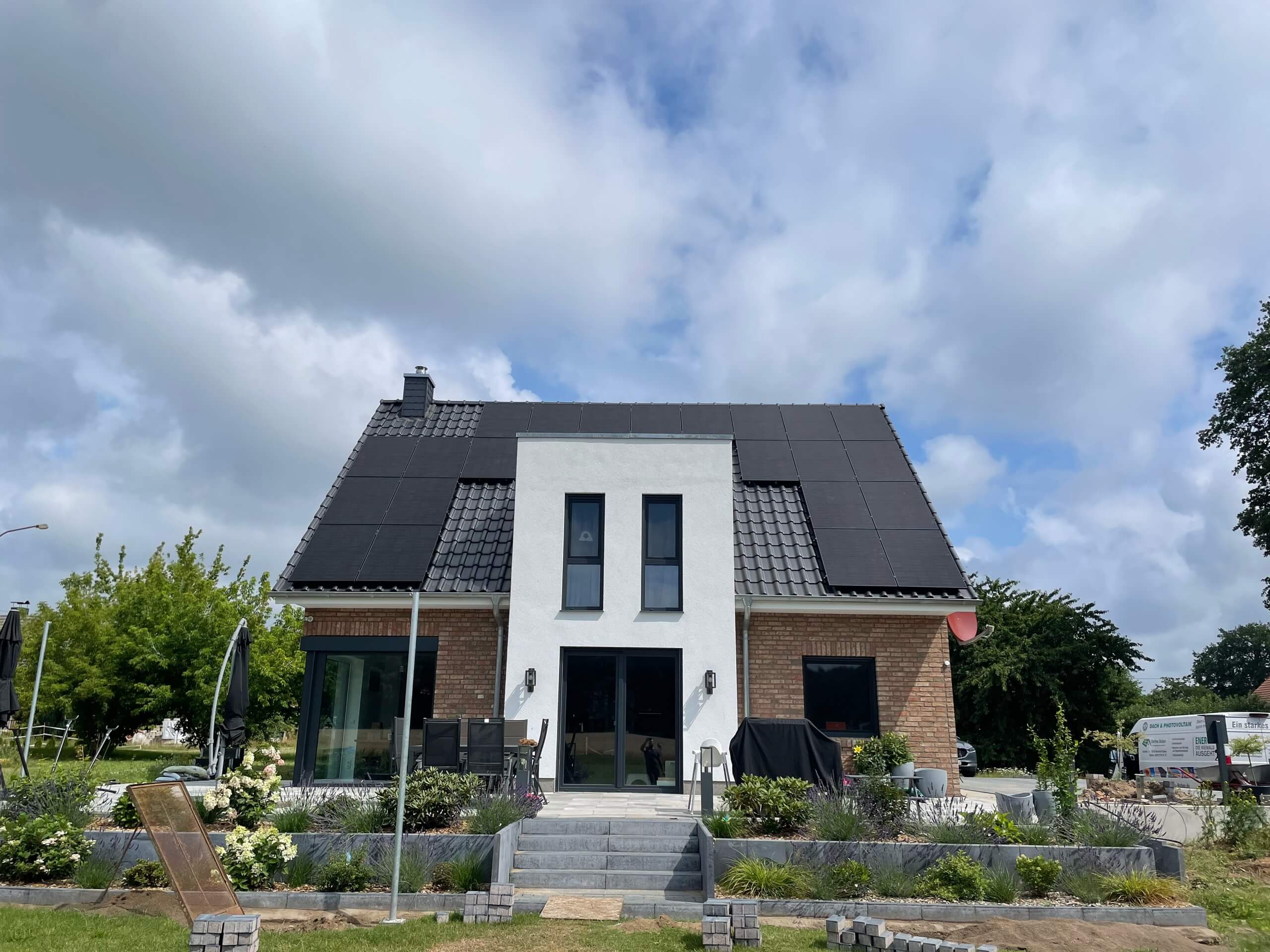 In Krenzlin entstand dieses moderne Einfamilienhaus, das energetisch wie optisch überzeugt. Besonders im Fokus steht die großflächig integrierte Photovoltaikanlage, die sich perfekt an das Dachbild anpasst und durch ihre dunklen Module nicht nur maximale Effizienz, sondern auch ein elegantes Erscheinungsbild liefert. Damit setzt der Bauherr auf nachhaltige Stromerzeugung direkt vom eigenen Dach – ein starker Schritt in Richtung Energieunabhängigkeit.
